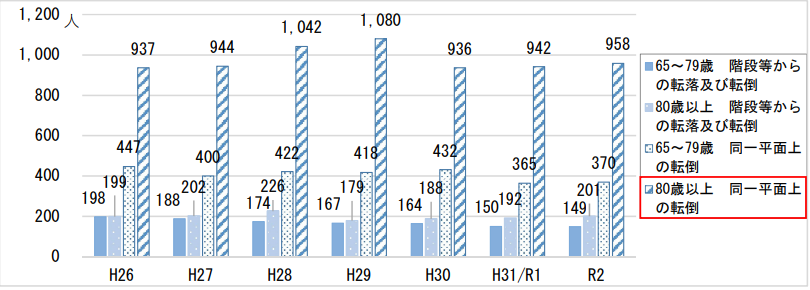 65 歳以上の家庭における「転倒・転落・墜落」による死亡者数の推移2