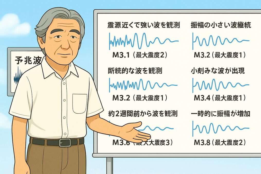 そして、経験上、前兆波が出たあとの【15日以内】(太平洋プレート型)や【45日以内】(フィリピン海プレート型)に、実際の地震が起こることが多いこともわかっています。ここでは、2025年3月〜6月に観測された前兆波と実際に発生した地震の対応関係を示し、それぞれについて簡潔に解説します。