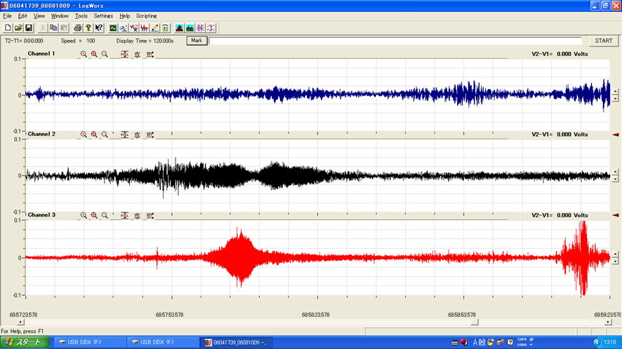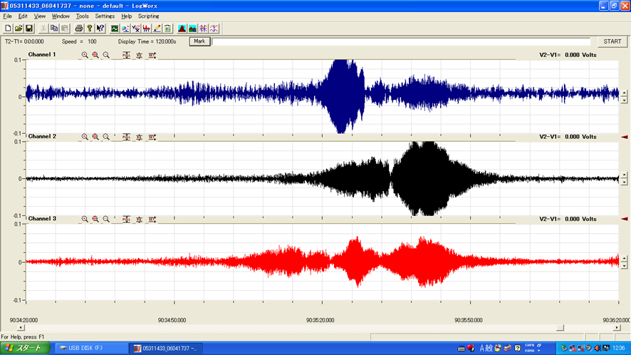 12日後にM3.1の地震が発生。この前兆波は中程度の振幅でしたが、連続P波の明瞭な波形と震源地の位置が予測範囲に収まっており、「振幅と地震規模」の相関モデルに基づいた予測と整合します。