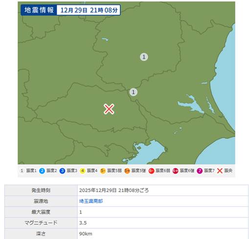 一方、埼玉県南部・鈴谷の観測点では、12月23日に前兆波が1件観測されています。