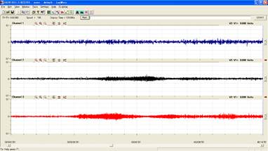 • 8:30波:持続82秒/主要周波数13.3Hz・10.2Hz/最大振幅146 mVp-p